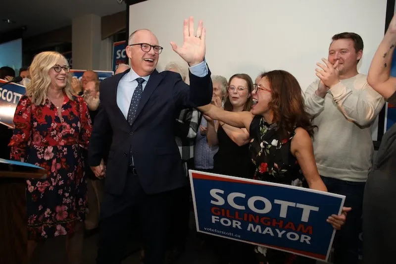 Mayor-elect Scott Gillingham arrives at his victory celebration at the Clarion Hotel in Winnipeg on Wednesday, October 26, 2022.